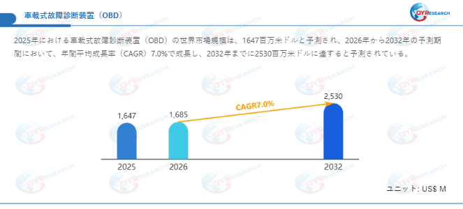上記の図表/データは、QYResearchの最新レポート「車載式故障診断装置(OBD)―グローバル市場シェアとランキング、全体の売上と需要予測、2026~2032」から引用されている。