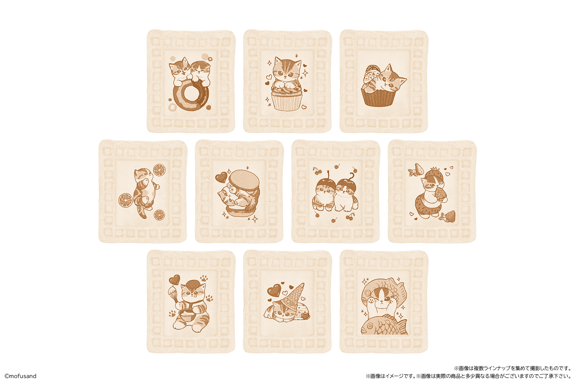 ワッフルには、スイーツをモチーフにした全10種類のにゃんこのイラストをプリントしています。
