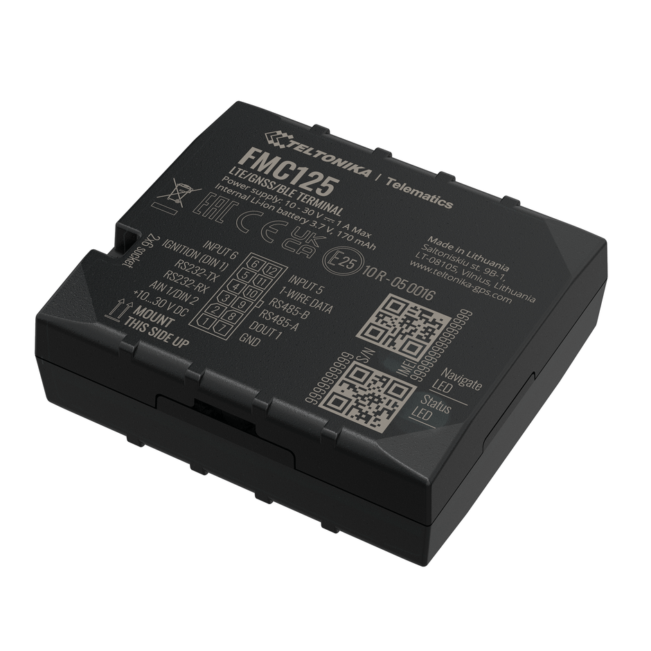 FMC125は、4G LTE(Cat 1)、GNSS、Bluetoothおよび内部GNSS/LTE アンテナを備えた小型デバイスです。この製品は、デジタル燃料センサー(LLS)、Garminナビゲーションデバイス、RFIDリーダーなどさまざまなサードパーティのRS232やRS485デバイスと通信できるように設計されています。また、拡張入出力セットと温度監視用の1-Wire(R)(1線式インターフェース)を備えているため冷蔵輸送などにも用いることが出来ます。デュアルSIM機能は、単一の通信事業者のカバレッジでは不十分なバックアップ通信チャネルを提供し、加えてデュアルSIM機能により、ローミングコストを大幅に削減することができます。