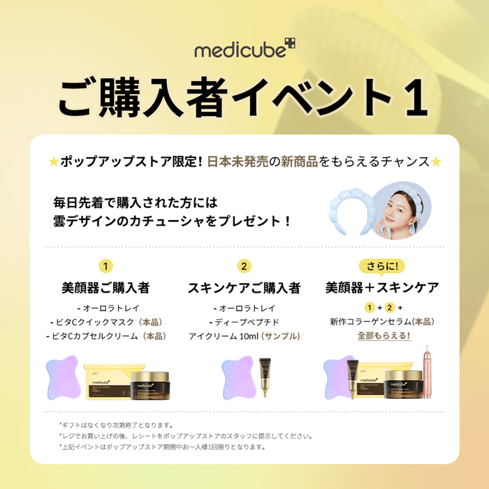 POP UP STOREで各商品をご購入した後、レシートをメディキューブイベントスタッフにご提示ください。