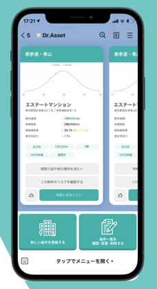 「Dr.Asset」シリーズ(※)では、AIにより最適・最新の物件情報が毎日届く“Dr. Asset レコメンダー”をはじめ、23区のあらゆるマンションの暮らしやリスク情報を無料で調べることができる“Dr.Asset マンションリスク”、2020年春にリリースした売買物件の価格査定サービス“Dr.Asset チェッカー”、同年冬にリリースした賃貸査定サービス“Dr.Asset プランナー”“Dr.Asset レントチェッカー”など、消費者・不動産投資家・不動産会社の取引最適化に貢献するラインナップを揃えており、いずれも無償で提供しております。
