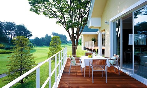フェアウェイフロントヴィラは、“ゴルフ場で暮らすように滞在する”をコンセプトに、ゴルフコースに隣接する戸建てスタイルのヴィラで、ご家族・ご夫婦や親しい仲間たちだけでゆったり開放的に過ごせる安心のプライベート空間と開放感を提供。室内は広々としたスイート仕様で、コースと一体化したウッドデッキテラスからは雄大なゴルフコースや眺望抜群の開放的な景色が堪能いただけます。