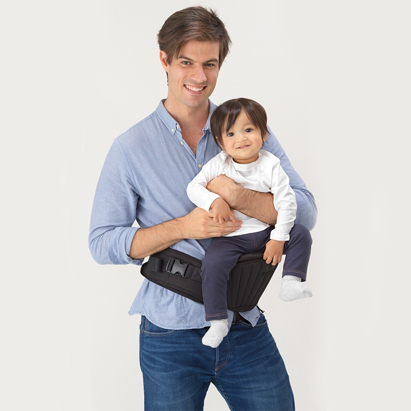 腰につけるお子さまを座らせることができる台座、抱っこを楽にしてくれる抱っこ補助具です。乗せ降ろしがしやすく、歩く!抱っこ!の繰返しの時期、またお家の中での寝かしつけにも大活躍!横抱きもできます。