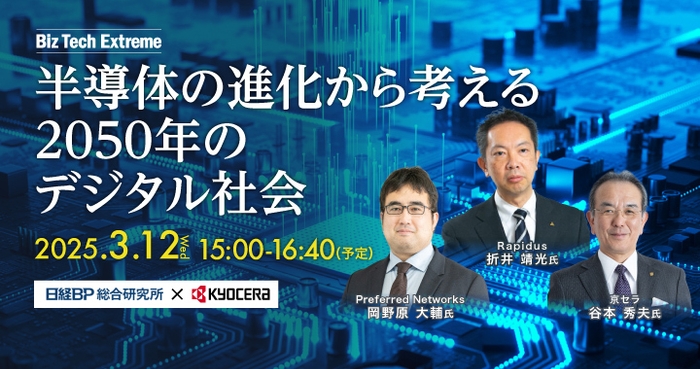 京セラ株式会社(代表取締役社長:谷本 秀夫)は、日経BP総合研究所と連携し、「宇宙」と「半導体」に焦点を当てたオンラインイベント「Biz Tech Extreme」を本年2月27日(木)と3月12日(水)に開催しますので、お知らせいたします。