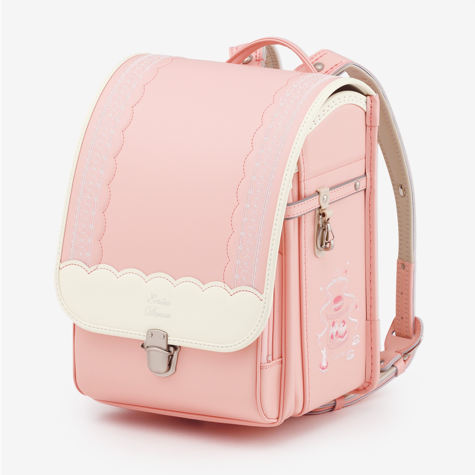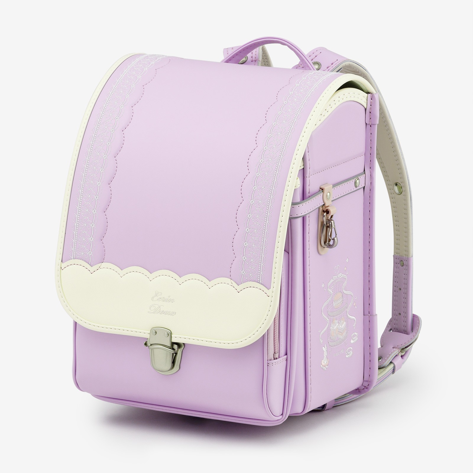 軽やかな背負い心地で、毎日の学校生活も舞台のように輝くひとときに。 リボン、マカロンをモチーフにした刺繍がポイント。