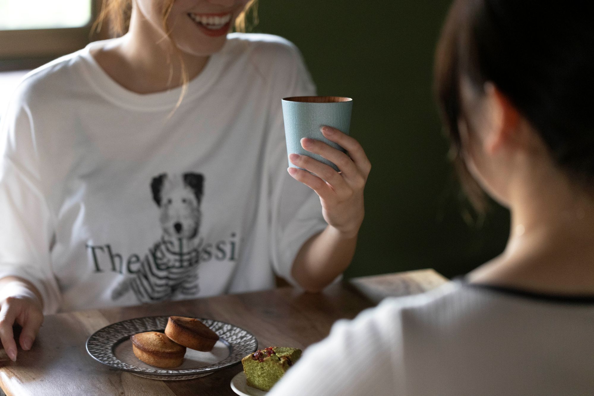 北陸の四季折々の風景、時間のうつろいを映し出す山中漆器のカップ。木地の美しさを透かす「拭漆」の伝統を受け継ぎながら、表面はひんやりとしたメタリックカラーで現代的に仕上げられています。薄く削り出された上品なフォルムは口当たりもやさしく、どんな飲み物も特別な味わいに。