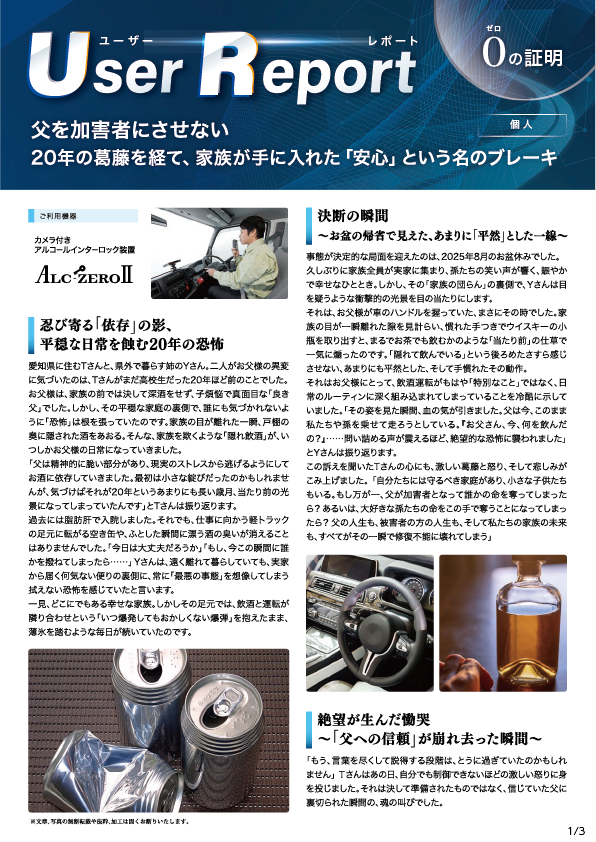 本レポートでは、父親の飲酒問題と約20年にわたり向き合ってきた家族が、「加害者にさせない」という強い思いのもとアルコール・インターロック導入に至った経緯と、その後の変化について紹介しています。