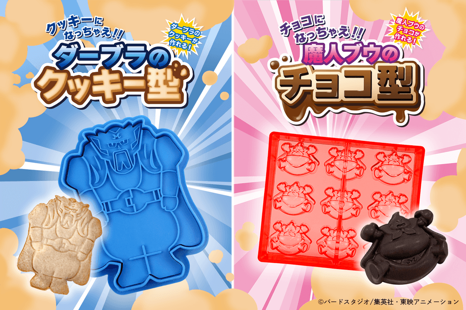 株式会社プレックスでは、「ドラゴンボールZ」魔人ブウ編の名シーンを自宅で再現できる2種のお菓子の型「クッキーになっちゃえ!!ダーブラのクッキー型」(1,100円 税込/送料・手数料別途)と「チョコになっちゃえ!!魔人ブウのチョコ型」(1,320円 税込/送料・手数料別途)を発売いたします。