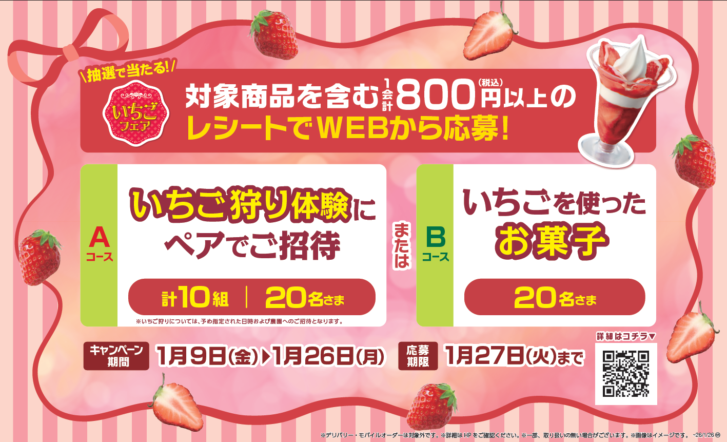 ※1. 対象商品につきましてはいちごフェア販促物にてご確認をお願いいたします。