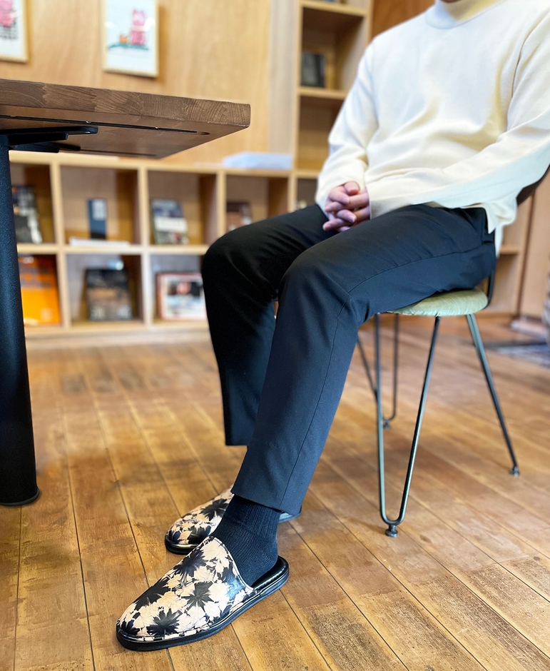 2.「美しく涼やかな表情が魅力の有松絞り」をレザーで表現し、「優しい履き心地」の特別なスリッパ!