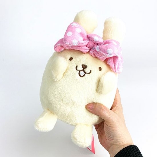 こちらはうさぎのように耳をピンと立てたポムポムプリンのぬいぐるみ。