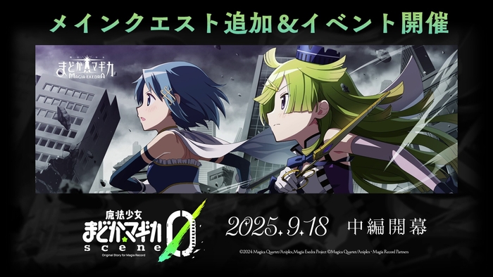2025年9月18日(木)12時より、メインクエストに「魔法少女まどか☆マギカ scene0 中編」を追加、同時にイベントストーリーを開始いたしました。メインクエストの条件達成で合計3,770個のマギカストーンを獲得することができます。