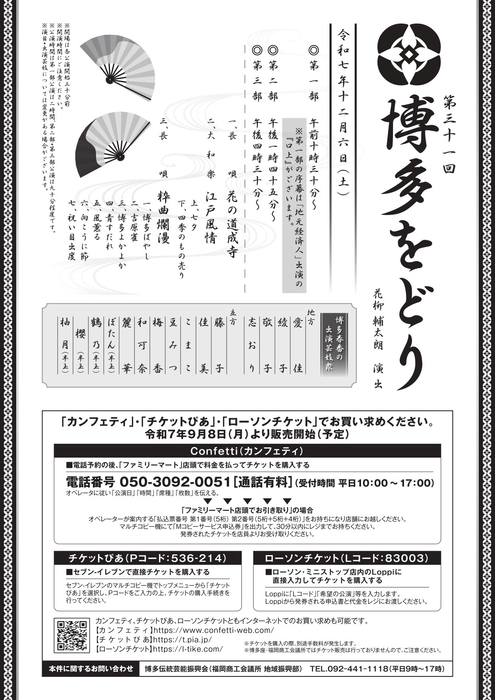 芸どころ博多の伝統芸能の重要な担い手である博多券番の芸妓が総出演する大変貴重な本公演、ぜひお越しください。