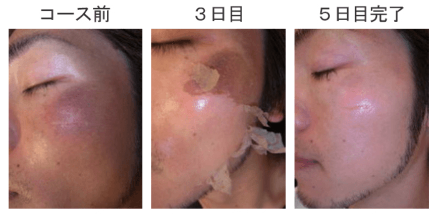 ハーバルピールは、特殊なハーブパウダーの力で古い皮膚を脱皮させ、ゆで卵のようなツルツルの肌に生まれ変わらせる脱皮技術です。脱皮後の2週間は、ベビースキンになりモチモチでツルツルになる反面、素肌が敏感でデリケートな期間です。その為、この期間中は肌に負担が大きいメイクや外的刺激には特に注意が必要です。