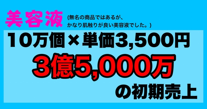 ◎美容液/10万個×単価3,500円=3億5,000万の初期売上