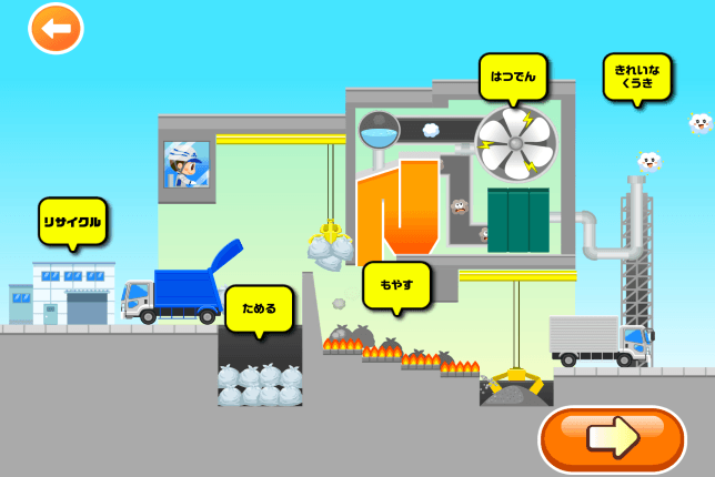 本ゲームは、「ごみはどこにいくの?」、「クレーンおしごとたいけん!」、「はいガスをきれいにしよう!」の3つのゲームで構成され、いずれも生活に身近なごみ処理について、ゲームを通して楽しく学んでいただけます。