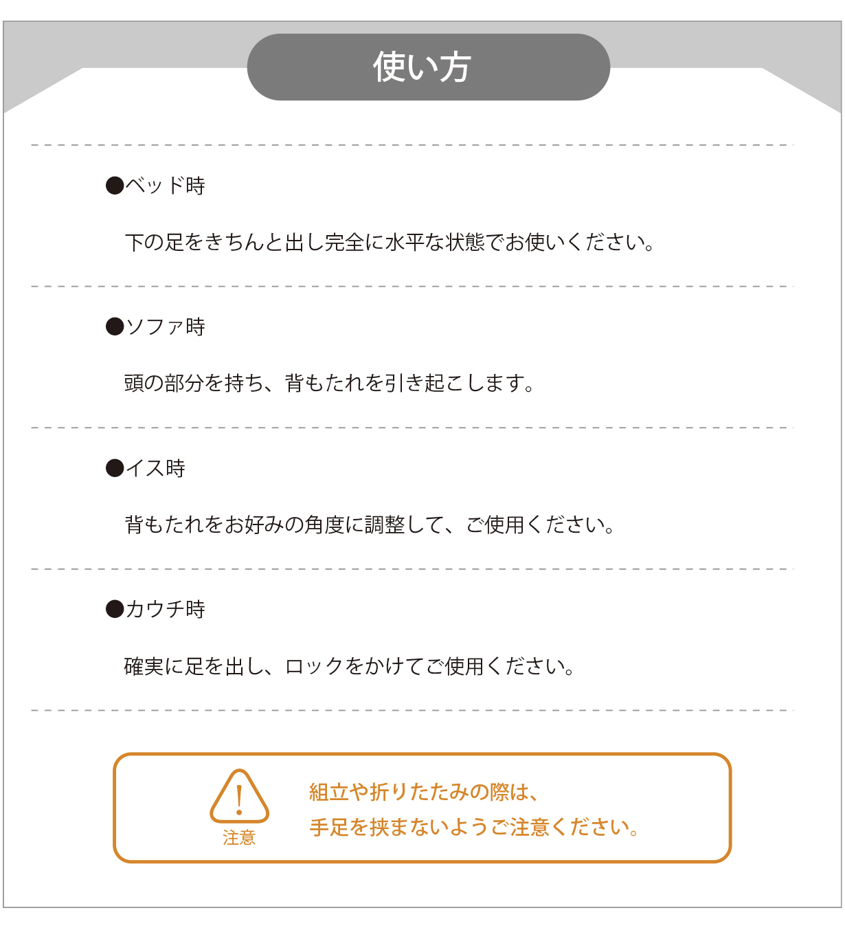 - ワンルームでも置き場所に困らない。使わないときはコンパクトに畳める。