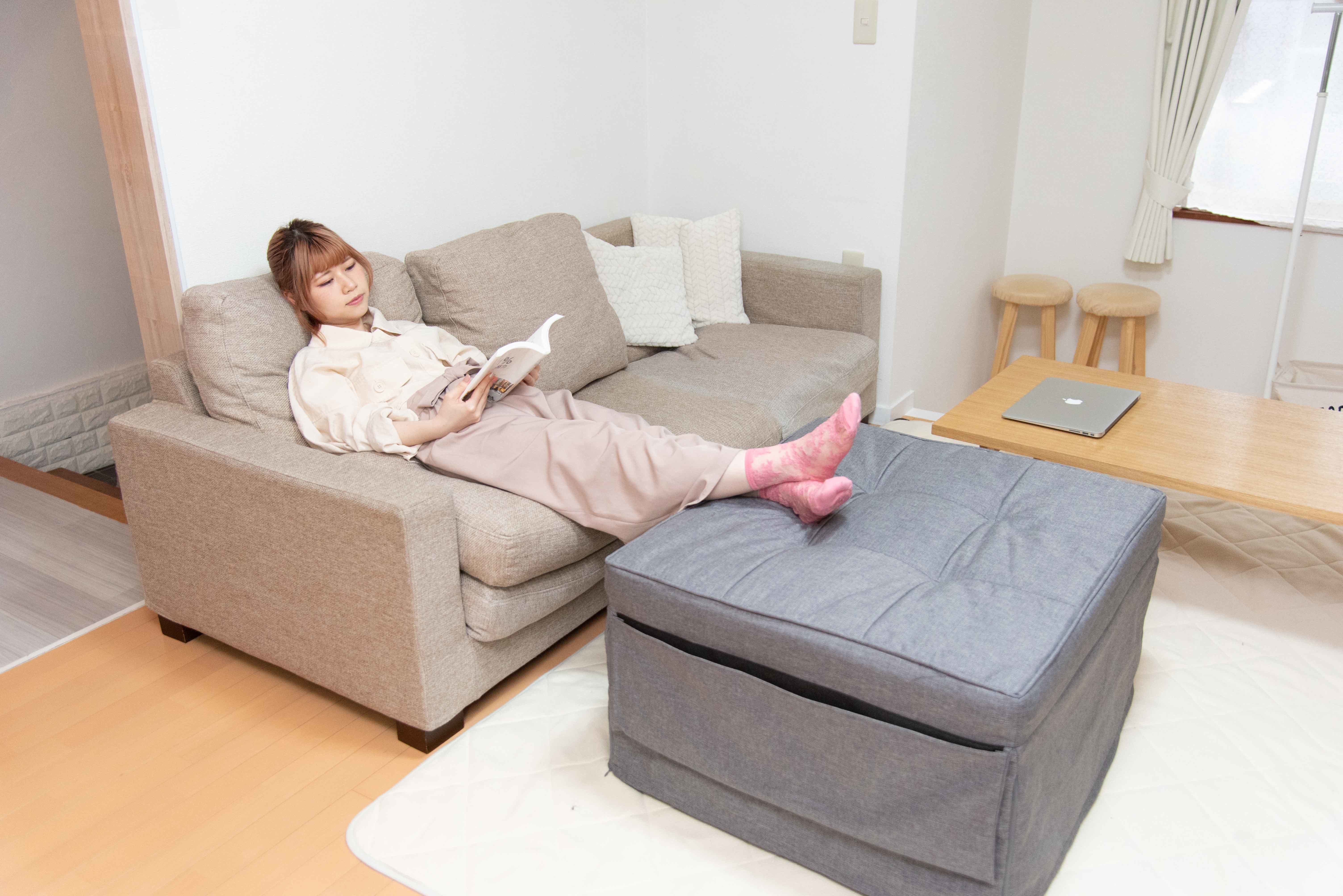 - 体圧分散性に優れたクッション入りソファでステイホームも快適に。