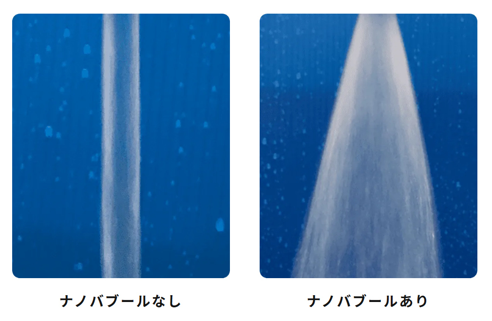 ナノバブル:洗い流す際の摩擦負担を抑えることを目指す