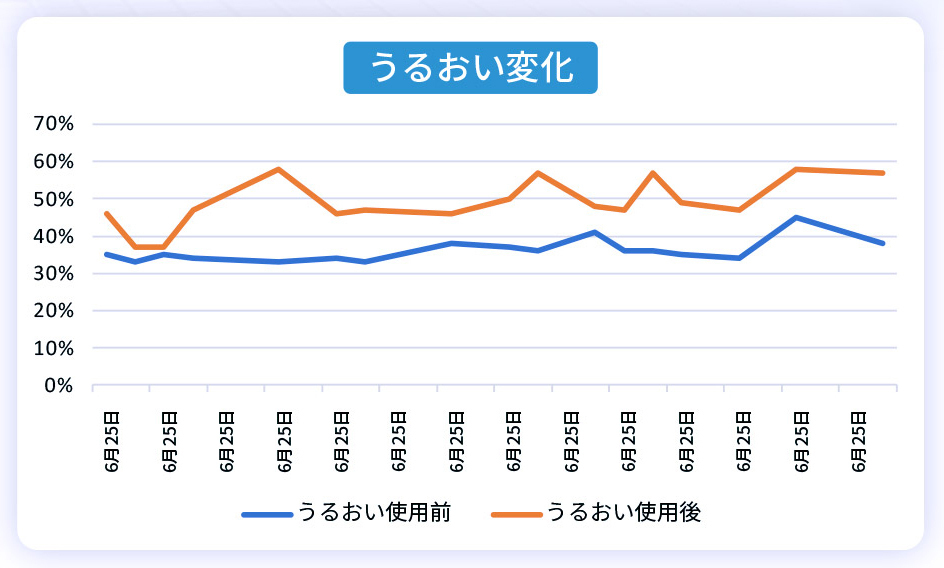 ※2025年6~7月のそれぞれ14日間で検証したうるおい量・油分量をチェッカーで計測