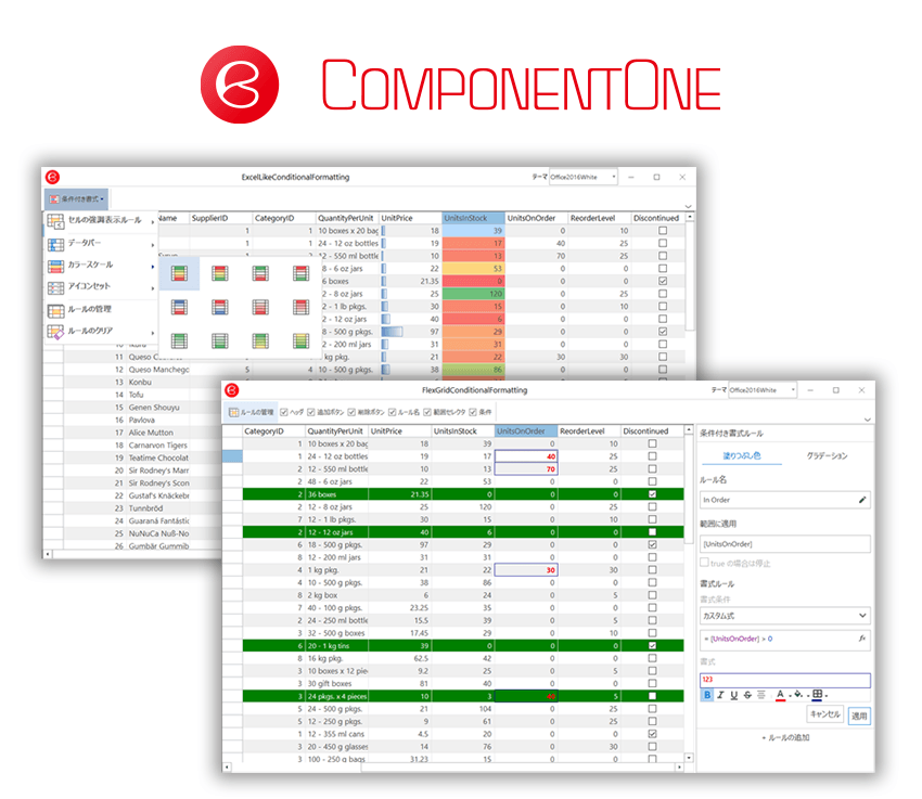 グリッドに条件付き書式ルールを付加する機能を追加した .NET UIコンポーネントセット新版が登場 ComponentOne 2020J v2