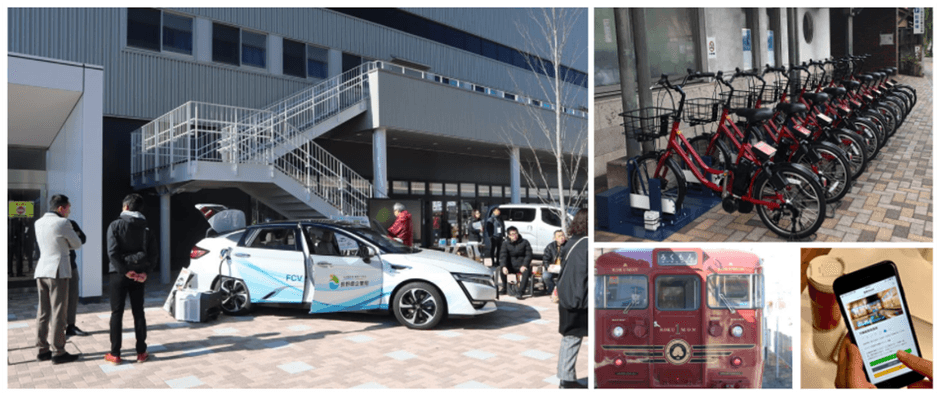 7月1日から千曲市・上田市合同で実証実験を開始するシェアサイクル、長野県が主導で取り組む水素自動車、当社にて取り組む温泉MaaSなど、千曲市で広がるモビリティサービス11種が一堂に会します。