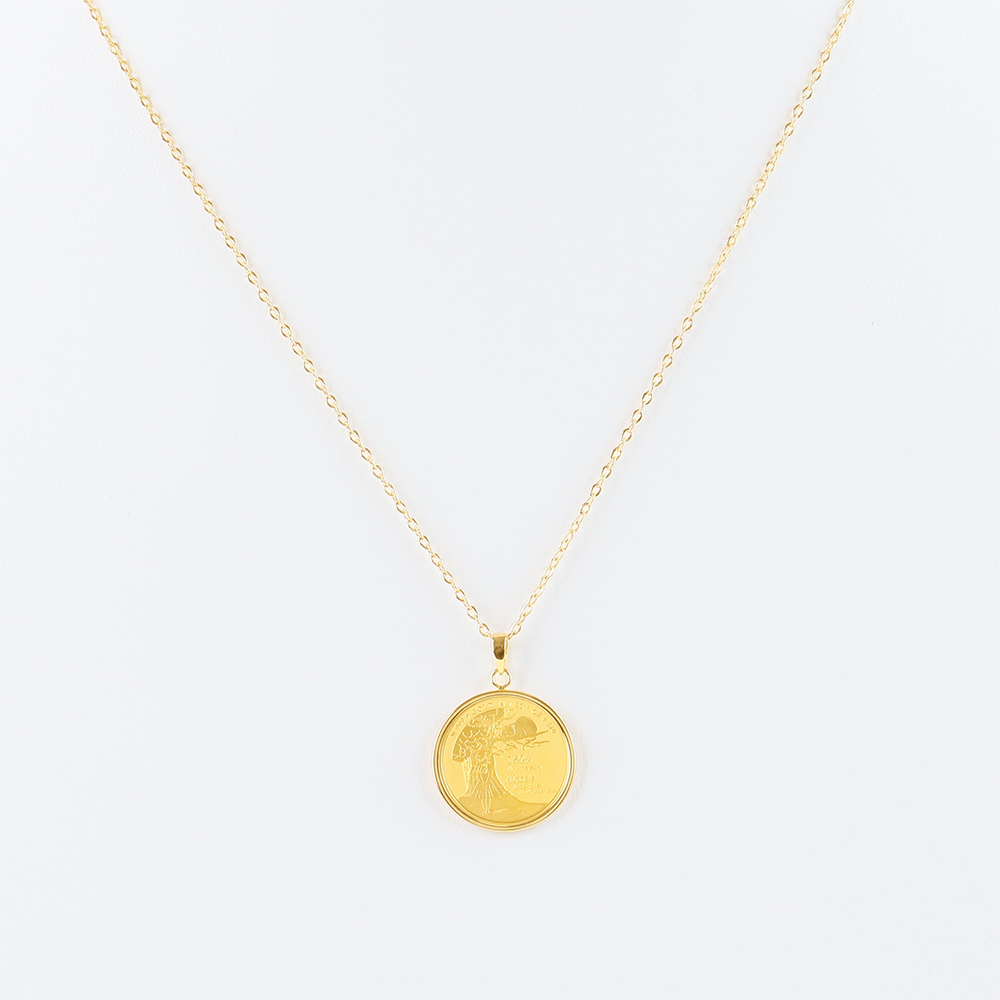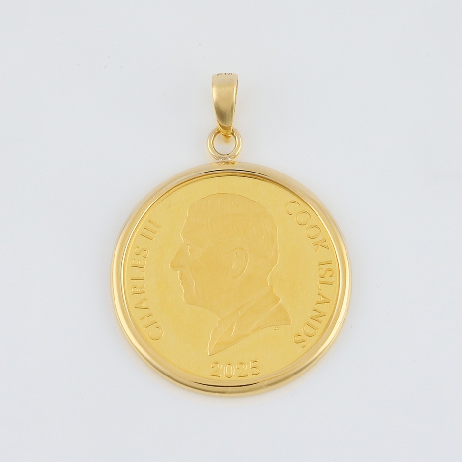 コインには18金(K18)製のフレームを採用し、ペンダントトップとして身に着けることが可能。