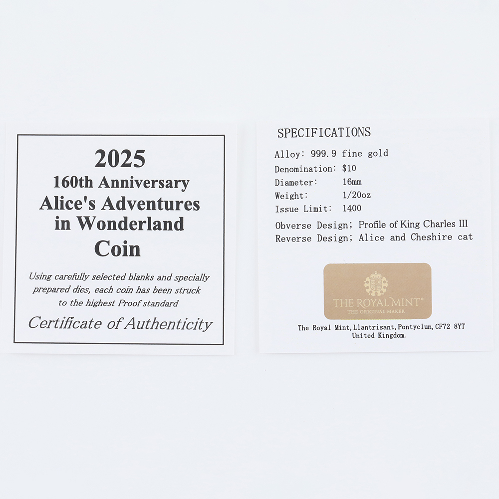 世界限定1,400枚 『不思議の国のアリス』 純金コインがペンダントトップに!