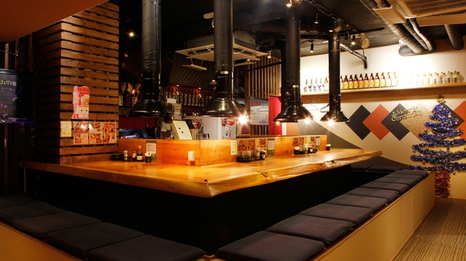 さらに温かみのある和風の空間にある大きなカウンターも魅力のひとつで、おひとり様やカップルにおすすめのスペースです。