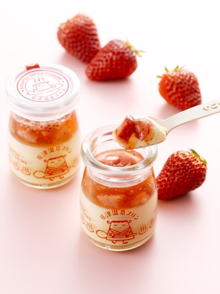 草津温泉の人気店 草津温泉プリン 吾妻中央高校の高校生とコラボ 群馬県ブランドいちご「やよいひめ」を使ったプリンを新発売!