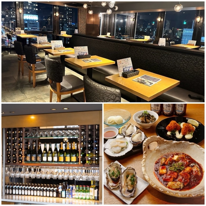 天満橋を一望しながら屋上で浜焼きを堪能!赤穂産サムライオイスターや、伊勢産おいせ牛も楽しめる新スタイルの浜焼きです。こだわりの日本酒や、プレミアムウイスキー、焼酎など日本全国100種類のお酒も取り揃えています。