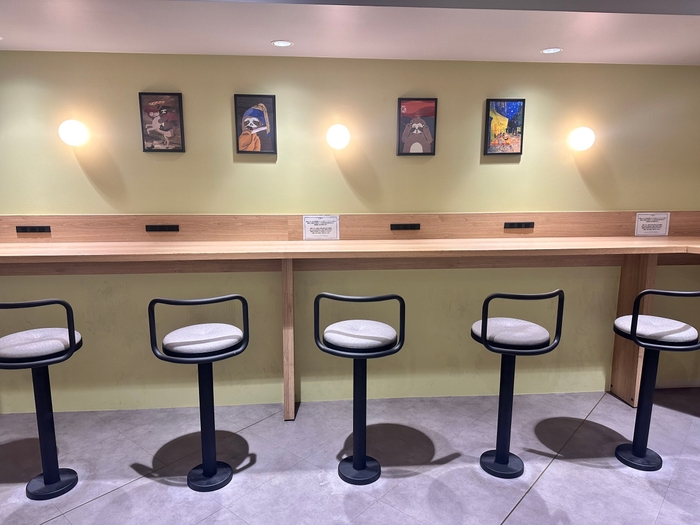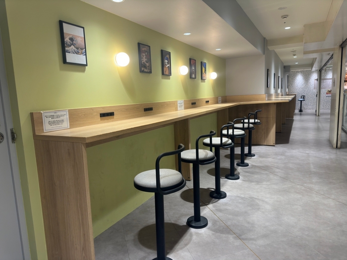 座席数を増やしより多くのお客さまにご利用いただけるよう利便性を高め、遊び心あるナマケモール(※1)の絵画をイートインコーナー各所装飾物として展開。より食物販フロアにマッチした空間に生まれ変わります。