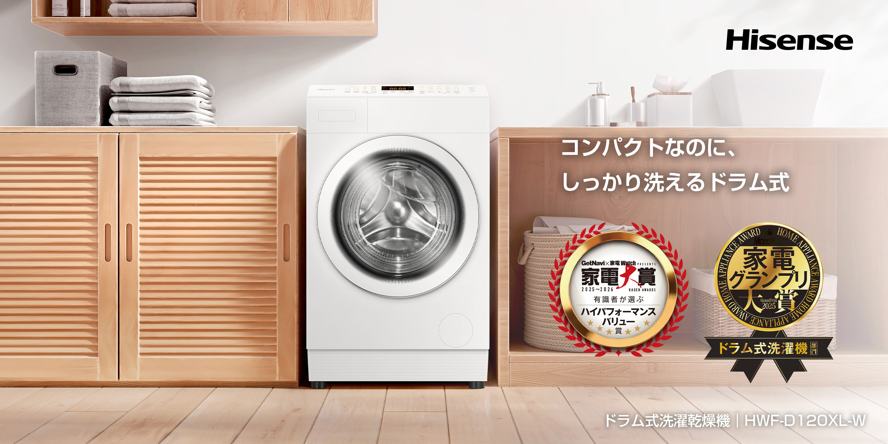 総合家電メーカー、ハイセンスジャパン株式会社(所在地:神奈川県川崎市、代表取締役社長:張 喜峰)は、ドラム式洗濯乾燥機「HWF-D120XL-W」が、日本の専門家が選ぶアワードにおいて高い評価を受け、洗濯機部門で「家電大賞2025-2026ハイパフォーマンスバリュー賞」および「MonoMax家電グランプリ2025 ドラム式洗濯機部門大賞」を受賞したことをお知らせします。