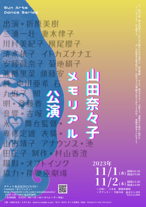 生前の山田奈々子と所縁のあったモダンダンス、コンテンポラリーダンス、舞踏のダンサーが、山田奈々子の名作や山田奈々子に捧げる新作を上演します。