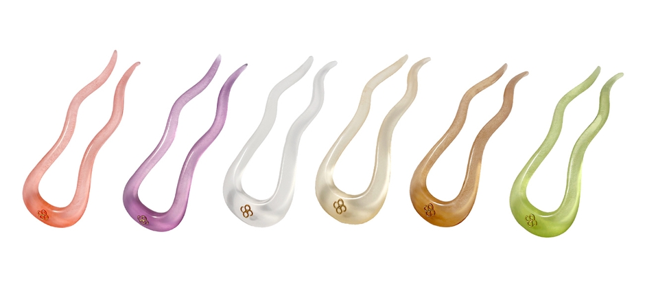 ウェ―ビーな曲線のシェイプは見た目の美しさはもちろん、ウェーブの凹凸が髪に差した際にしっかりとホールドしてくれる機能性も備えた人気のルーサイトヘアピン。コレットマルーフのアイコンがワンポイントに施されたアップデートバージョン。