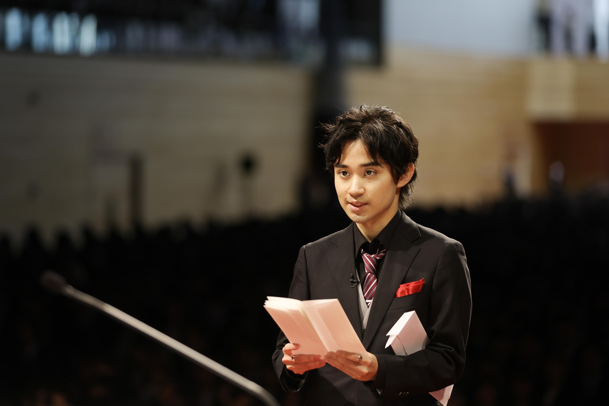 2部では、学部代表の桂川由菜さん(農学部)が「新たな環境に不安もありますが、これから出会う仲間とともに切磋琢磨し、社会に必要とされる人間となれるよう日々精進していきます」と力を込め、社会人大学院生となる大学院代表の倉谷洋佑さん(情報工学研究科)は「懸命に働く人々の支えとなり、余裕を生み出す技術を探究し、その成果を社会に還元していきたいと考えています。その決意のもとに大学院で真摯に学び続けることを誓います」と宣誓しました。