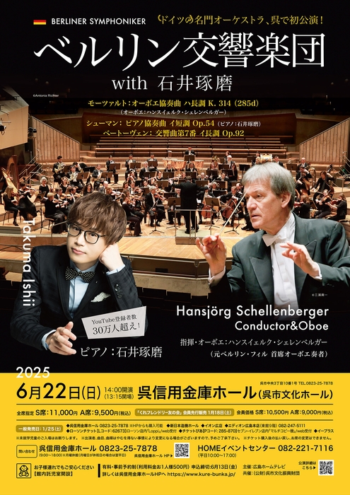 広島ホームテレビ(所在地:広島県広島市)は、主催で2025年6月22日(日)「ベルリン交響楽団with石井琢磨」を呉信用金庫ホールで開催します。ドイツの名門オーケストラが2年ぶりに来日し、初の呉公演開催決定!