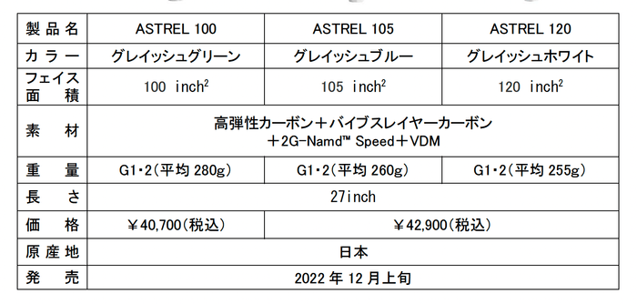 ヨネックス株式会社(代表取締役社長:アリサ ヨネヤマ)は、大きな飛びと上質な打球感を実現するテニスラケット新「ASTREL (アストレル)シリーズ」を2022年12月上旬より発売いたします。