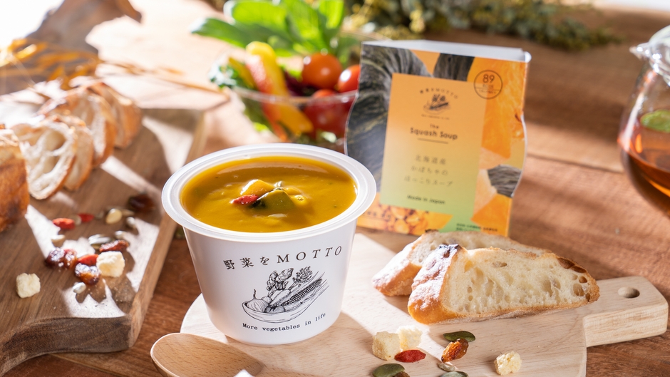 モンマルシェ株式会社が運営する国産野菜フードブランド【野菜をMOTTO】は、人気シリーズ レンジカップスープの新フレーバー「北海道産皮つきかぼちゃのほっこりスープ」を5月1日に発売いたします。