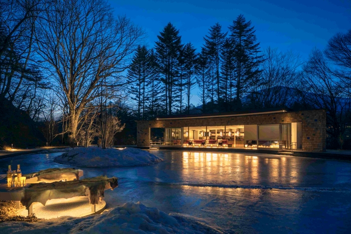 長野県・軽井沢の滞在型リゾート「星のや軽井沢」では、2020年12月1日~2021年2月28日の期間に、「森のほとりcafe&bar ~氷上の星空特等席~」を営業します。これは、「森のほとりcafe&bar」の営業中にケラ池のスケートリンク上に設けられた氷上の特等席です。ここでは、満天の星を眺めながら、信州のワインや湯葉フォンデュなどのメニューを楽しめます。また、この席を利用できるのは星のや軽井沢宿泊者限定、且つ完全予約制です1組2名限定の貸し切りの空間で、特別な時間を大切な人とともに過ごせます。