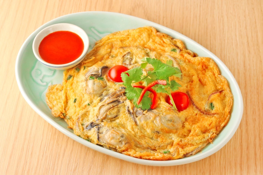 タイの卵焼き(カイジャオ)は、揚げるように焼き上げることで「外はカリカリ、中はふんわり」とした食感が特徴です。