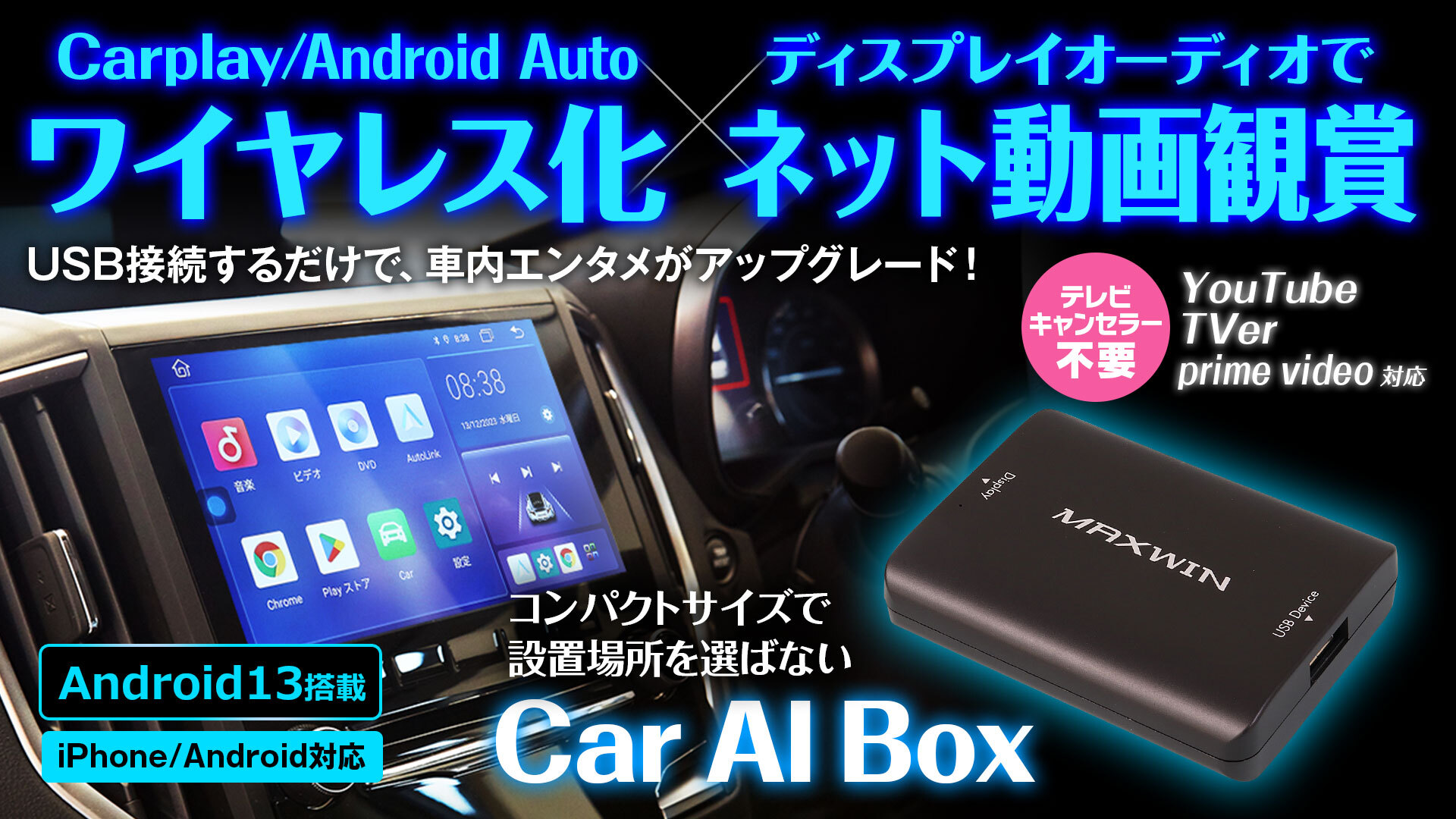 MAXWINからディスプレイオーディオや カーナビのUSBに繋ぐだけで 好きなアプリを純正ナビ画面で視聴できる コスパ最強のAIBOX『DA-MED02』が登場!