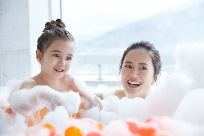 展望ジェットバスでは、いくら丼をイメージしたお風呂を楽しめます。入浴料を泡立ててごはんのような見た目になったお風呂に、いくらをイメージしたボールを乗せると「いくら丼風呂」の完成です。鮭の切り身をイメージしたフロートが新たに加わり、いくら丼風呂での体験をより満喫できるようになります。