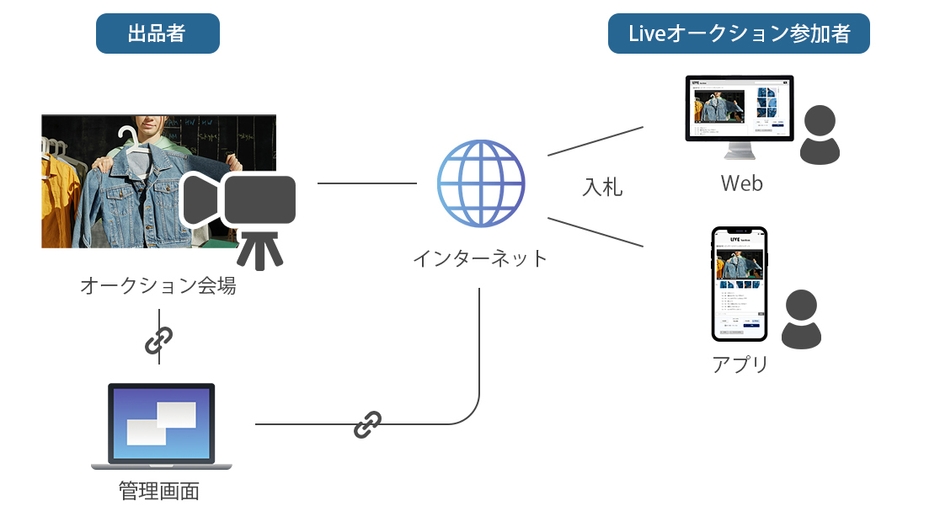 入札・落札などの情報をシステムと連動させることで、現地会場で行われるオークションへネットからも参加できるようになります。既に利用している顧客管理システムや在庫管理システムがある場合は、連携させることで継続して同じシステムを利用した運用も可能です。