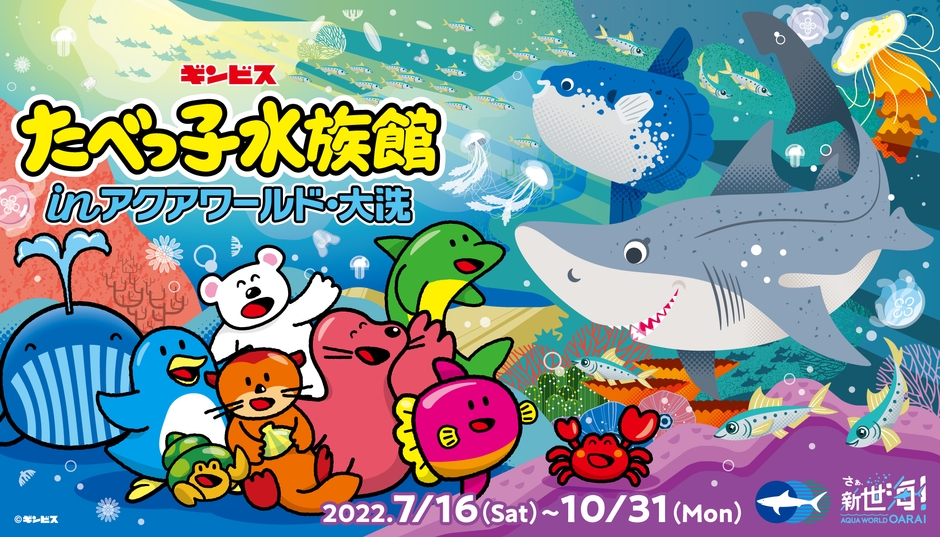 この度、「サメの飼育種類数日本一」のアクアワールド茨城県大洗水族館は、人気急上昇中の「ギンビス たべっ子水族館」とコラボレーションした特別イベント「たべっ子水族館 in アクアワールド・大洗」を2022年7月16日(土)~2022年10月31日(月)に開催します。アシカやマンボウなどのたべっ子水族館のキャラクターたちと一緒に、館内周遊ラリーやワークショップを通して、アクアワールド・大洗を楽しむことができるスペシャルイベントです。
