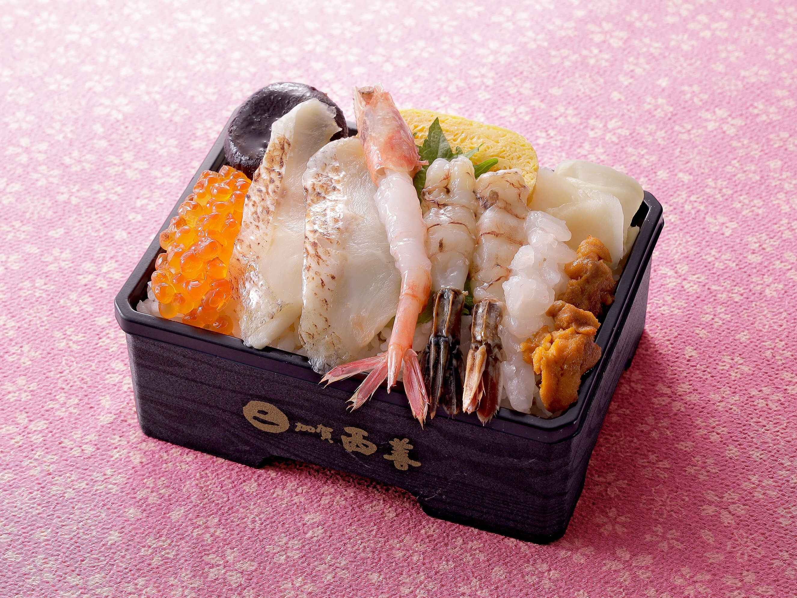 炙りのどぐろに、プリッとした身と濃厚な甘みのガスエビ・白エビ・甘エビなどが楽しめる豪華海鮮弁当。