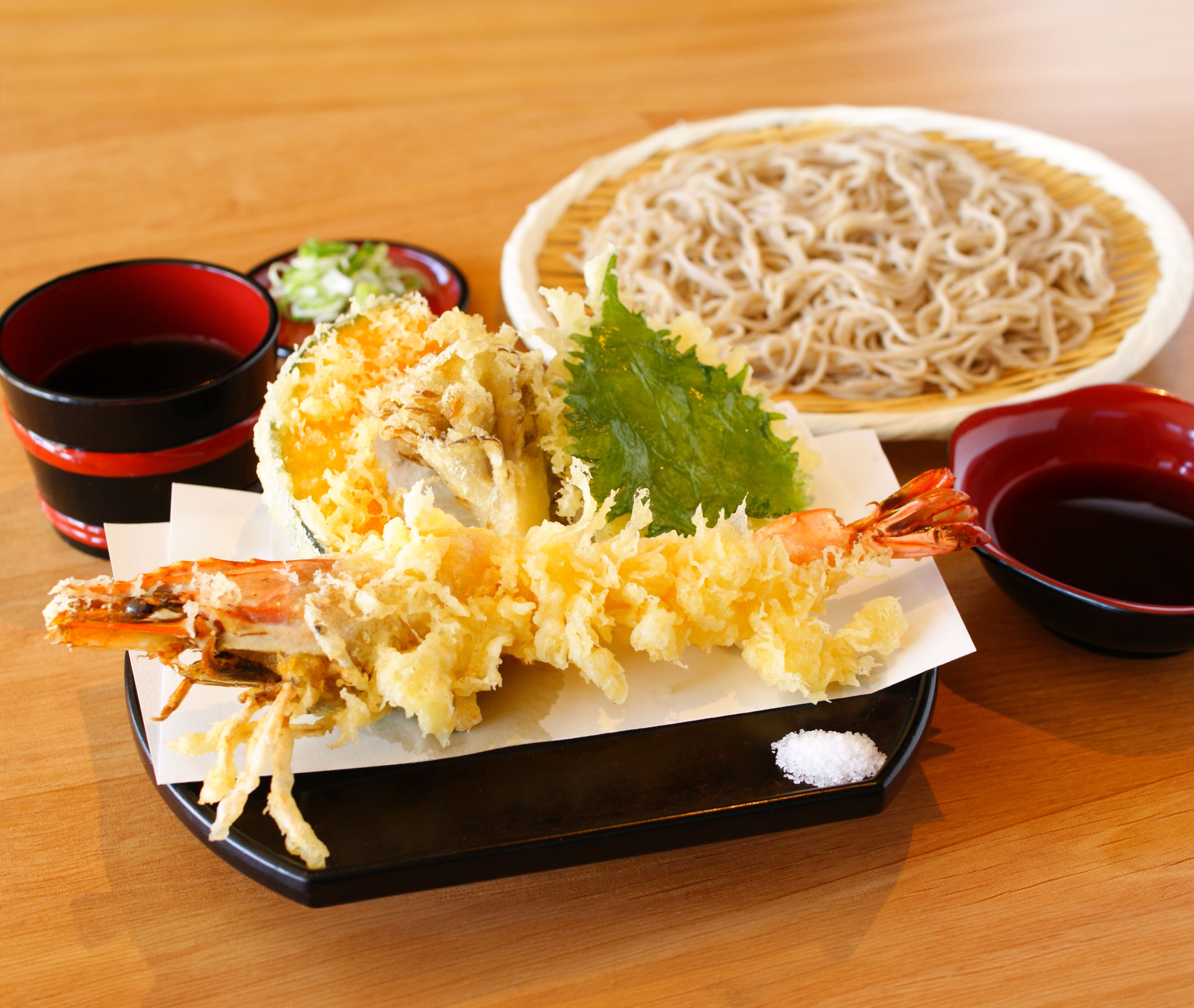 信州産舞茸の天ぷらを味わえる、東武限定の天ざるそば。