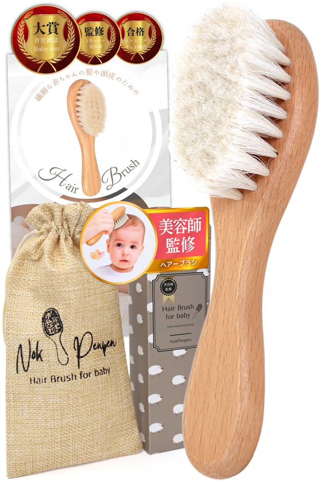 とっても柔らかい羊の毛を採用。赤ちゃんの頭皮を傷つけないので、保育園や幼稚園へ急いでいる朝でもささっと気軽に使用可能。高齢者や治療等で髪や頭皮に負担をかけたくない方へもおススメです。