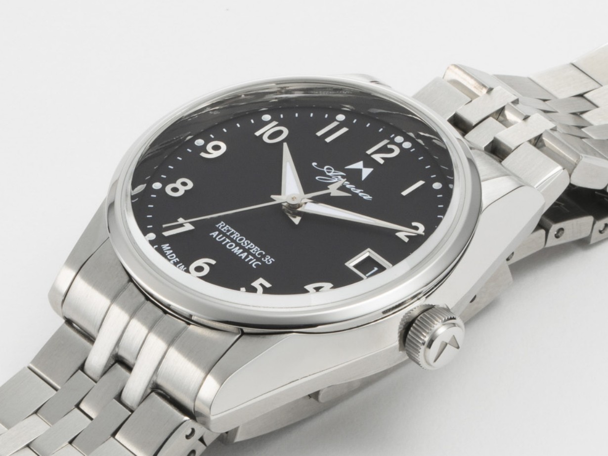 RETROSPEC35は、機械式時計の国内市場が盛況であった時代を振り返り、防水機能等の基本性能を見直しながら、視認性やアワーマーク、針の形状のバランス等、腕時計の基本スタイルとも言える形態を、現代にも違和感なく受け入れられるように磨き上げました。