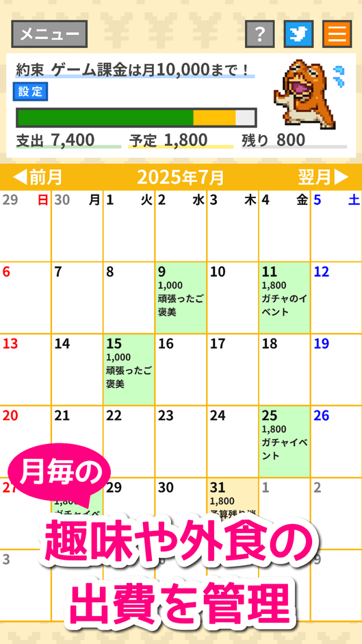 アプリ名 :月ごと浪費ストッパー ガマちゃん